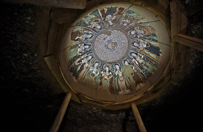 The Kumtura Caves are located at the outfall of the Weigan River, about 30 kilometers northwest to Kucha, on the cliff of the Mountain Dinggu by the eastern bank of the river. The listed 112 caves can be divided into southern and northern parts, including worship caves, monk’s caves and a few meditation caves. The murals remained here are only 4,000 square meters. Speaking of the excavation time, the caves belong to 3 periods. The earliest period is the 5-7th centuries, the artistic style is typical local, namely Qiuci style, the 2nd period is between 8th to 9th centuries, the artistic style from inner China appeared here on some paintings, and the latest period ranges from the 10th century to 11th century or later, Uighurian style became prominent. As an important Buddhist cultural remains which reflects the blend of the art of ancient Qiuci, Han and Uighur people, the caves have been listed as historical monuments and cultural relics under state protection.