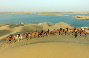 Today, the Express will take you to Yuli County, Korla City where you'll be overwhelmed by both natural wonders and unique culture of the Lop Nur People Village, one of the largest villages in western China. There are a great amount of activities that make you want to travel here again, including visiting Lop Nur style buildings, walking in the desert, wading through the Tarim River, and taking nice photos at the forest of golden desert poplar. Also you will be hospitably welcomed by the Luo Nurs at their home, and you can ask them about the key to longevity as there are many centenarians. After enjoying a local dinner, you will be back to Urumqi.