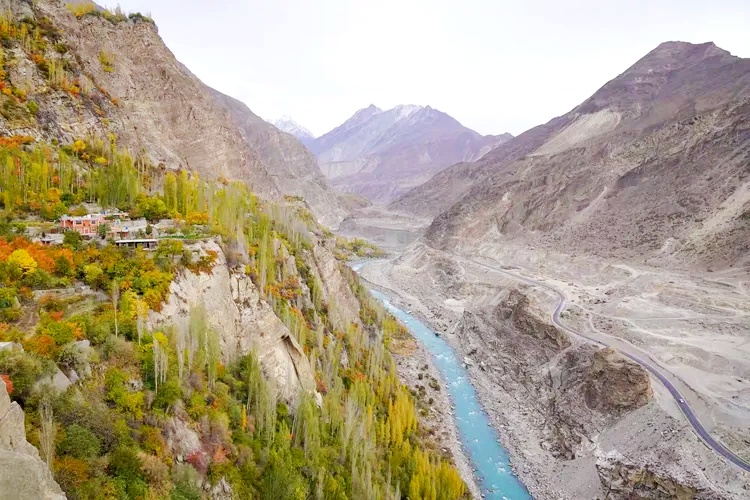 from Karimabad to Raikot Bridge on the east bank of Indus and cross the