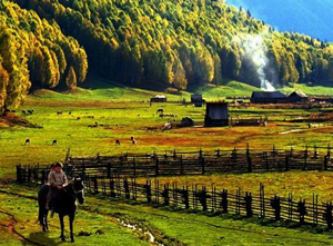 Kanas is only 50km away from Hemu town. Drive to the Kanas Lake, the most beautiful mountain lake you have never seen. A boat trip is highly recommended, also a visit to local ethnic family -TUWA people . -The Tuwa Tribe: A Mongolian tribe called Tuwa lives on the south bank of the Kanas Lake. Believing in Lamaism, it is a valiant ethic minority with a long history. Tuwa people speak Turkish, resembling the language of Kazakh, and live on hunting and graze. They also have a special folk custom. It is the latest lake open to all tourists in China and has attained a reputation as “the tourism pearl of Mountain Altai”. The lake takes on different colors following the four seasons of the year, sometimes it’s crystal blue, sometimes it’s dark green, or even gray, you may find it containing many colors setting off each another at a time, thus it has got a name as the color-changing lake.
