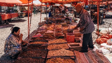 market filled with fruit, clothing, crafts, knives, carpets and almost