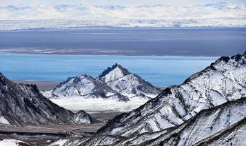 3, Ayakumu Lake is a mountain lake which is never frozen with the sea level of 3876ms. It is the lowest point of the Reserve; the lake is 45kilometers long and 10kilometers wide. To the east, there is a cliff Stone Mountain, to the west, there is a mountain in the shape of Pyramid with the sea level of 4400ms. We will drive along the north shore of the lake, please be careful, don't fall into it.