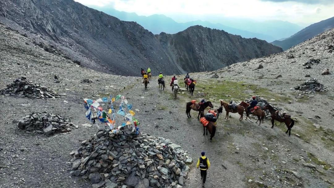 Ready to Conquer the heights! Today's 20km horseback ride challenges you with the tour's toughest ascent—a steep 3,800m mountain pass. Traverse rugged river valleys, dismounting occasionally to navigate rocky trails. After conquering the summit, descend to a cozy herder's home for lunch, then follow the river into a serene valley where your camp awaits.
