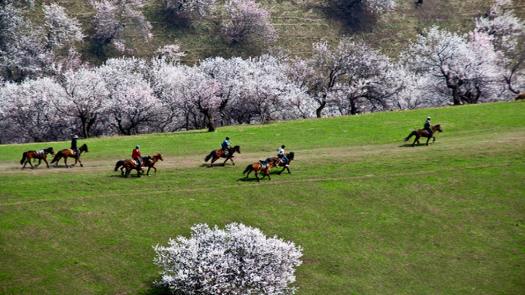 Discover Yili's apricot blossoms and experience Xinjiang's only authentic sea riding, blending floral beauty with equestrian adventure.