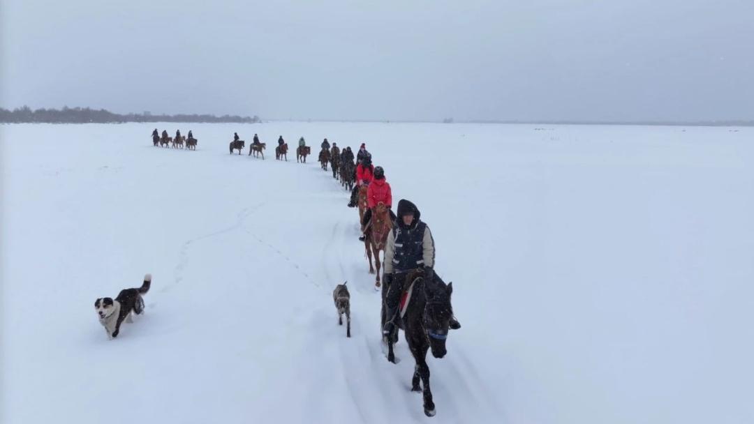 After a hearty breakfast, a short 30-minute drive takes you to the equestrian camp. Meet your horse, tailored to your skill level, and enjoy a safety briefing and warm-up session. Then, set off on your first ride! Traverse endless snow-blanketed grasslands under a crystal-blue sky, galloping freely for 20km (5-6 hours). Pause for a cozy picnic lunch in the snow and ride until sunset, painting the sky in hues of gold. Return to town for dinner and a well-earned rest.