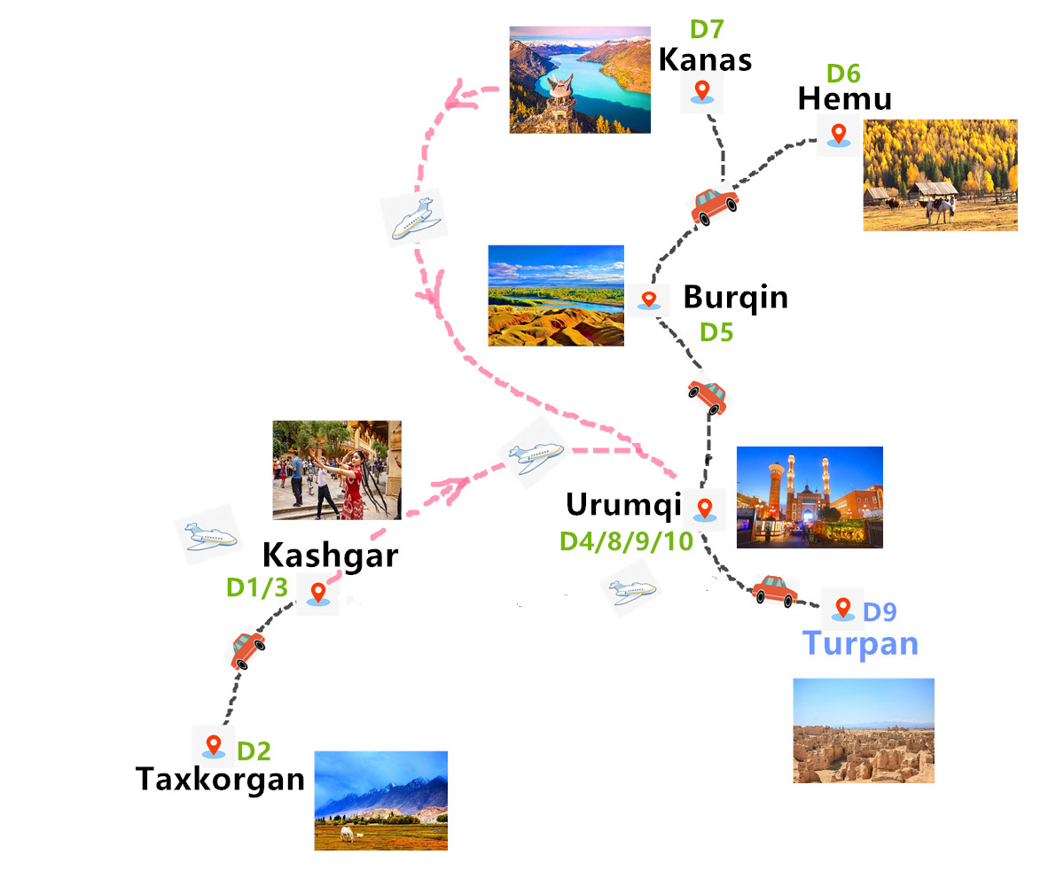 Private transportation through out the itinerary. Xinjiang China will arrange for all travelers to be met on arrival and seen off on departure based on your flight info.
