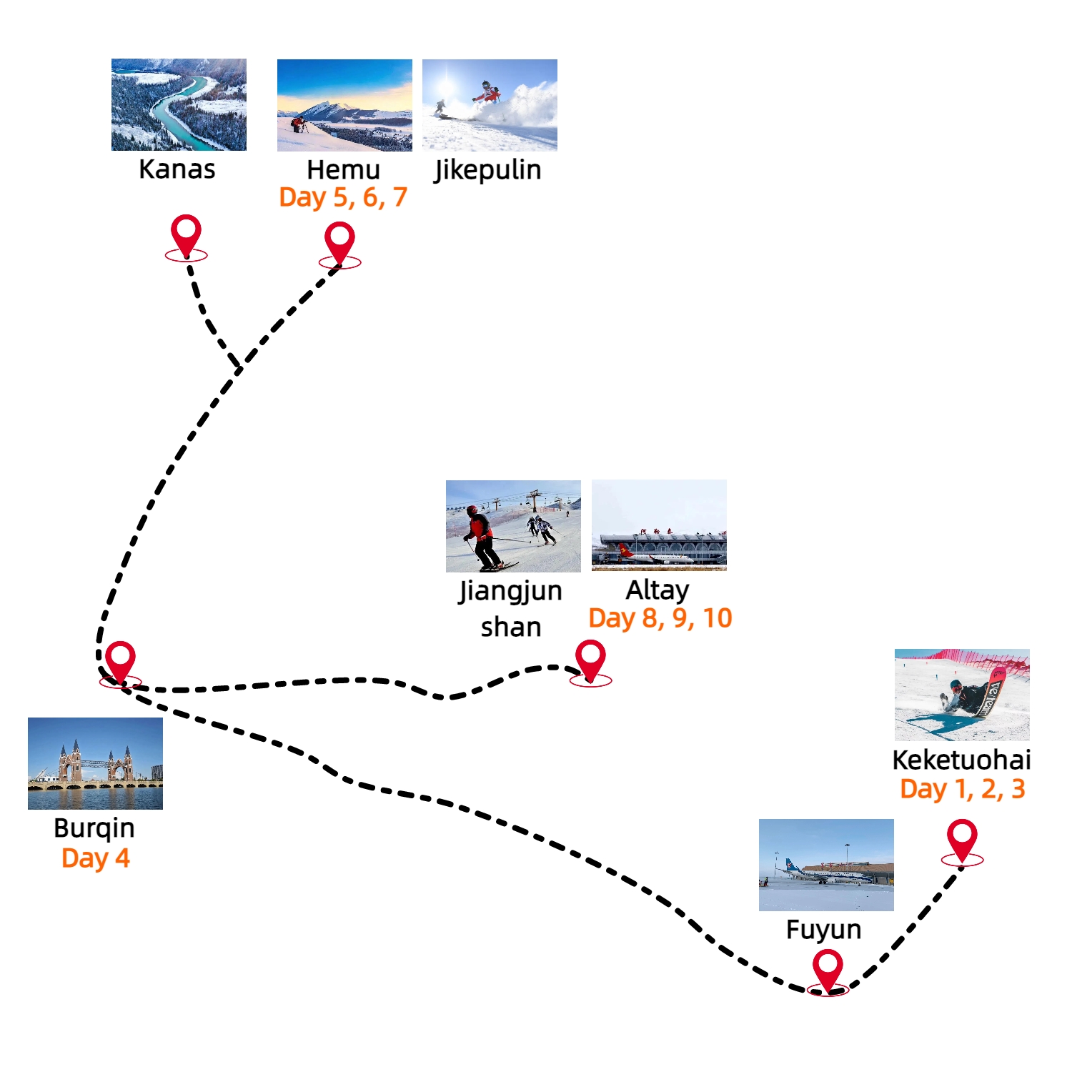 Today you will take the flight from your city to Fuyun. When you arrival, we will take you to Keketuohai and check into the hotel. The rest of the day is free for you. Your wonderful winter holiday will begin tomorrow.