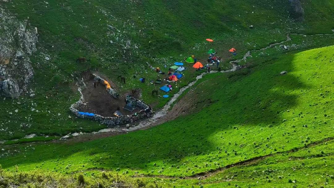 Challenge continues after breakfast, you'll ascend a ridge and descend into a valley where two rivers converge. You'll cross the river flowing from the northeast and then proceed upstream along the north bank of the other river to Kuerte Lengsu Camp. Before reaching the campsite, you'll cross two more rivers: one flowing from the south and the other from the northwest. The campsite is spacious and the route offers a moderate level of difficulty.