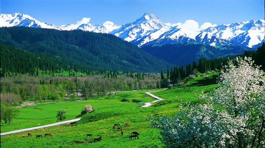 The main attractions include Qiaxi Valley Waterfall, Swallow Bridge, Thirteen Compatriots Tree, Shimen Willow Tree, Spruce King, etc. The main reception point is the yurt of Kazakh herdsmen, which can accommodate up to 1,000 people per day.
