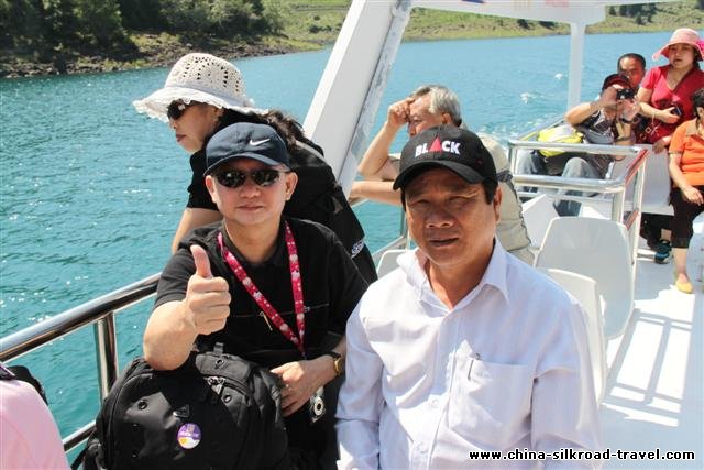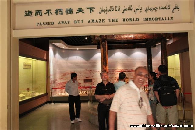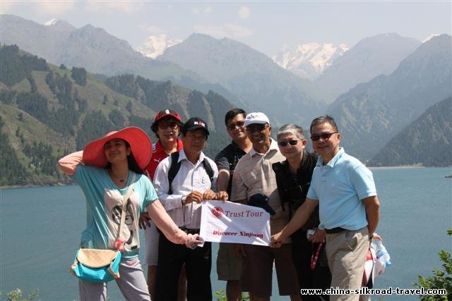 The next day we went to the heavenly lake, on the mountains next to Urumqi, also called heavenly mountains and which are a part of the Himalayan range. The drive was by our van then a government bus and then a smaller van to reach a lovely lake and presto we could see snow capped mountains in the back ground! We went for a boat ride after forcing Jerry who said he was scared of water! It was a very nice place. From the lake we attended a cultural program, in Wulumuchi, by the uyghur consisting of Dances and songs including belly dancing where the lead dancer had a snake around her. In the morning we visited the museum which was informative. All the cities have Indian like names but due to passage of time Kashi became Kashgar; Kushan became Kuqa.
